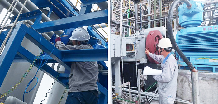 圖 / 津摯環(huán)保工程師現(xiàn)場調(diào)整PSA項(xiàng)目設(shè)備