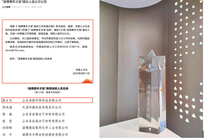 近期,首屆淄博人才節啟動儀式暨人才高峰薈在淄博會展中心隆重舉行。會議宣布全市首批155名“淄博青年才俊”名單,其中山東津摯環保科技有限公司(以下簡稱“津摯環保”)董事長徐占杰博士名列其中。
